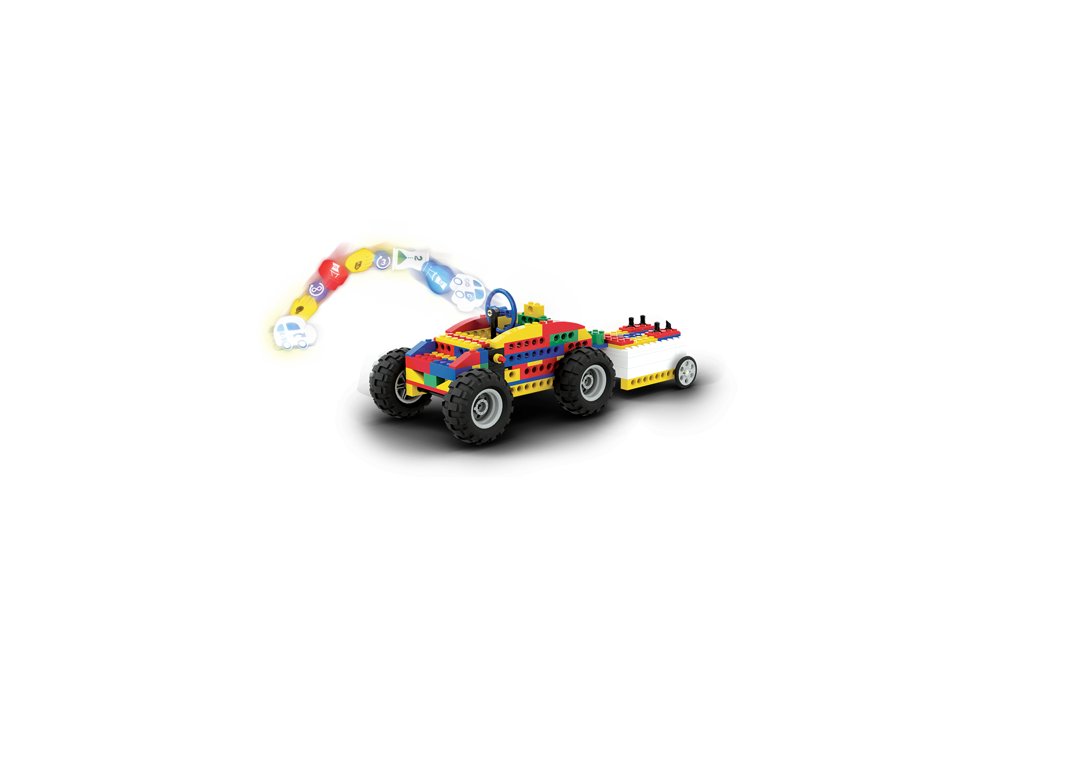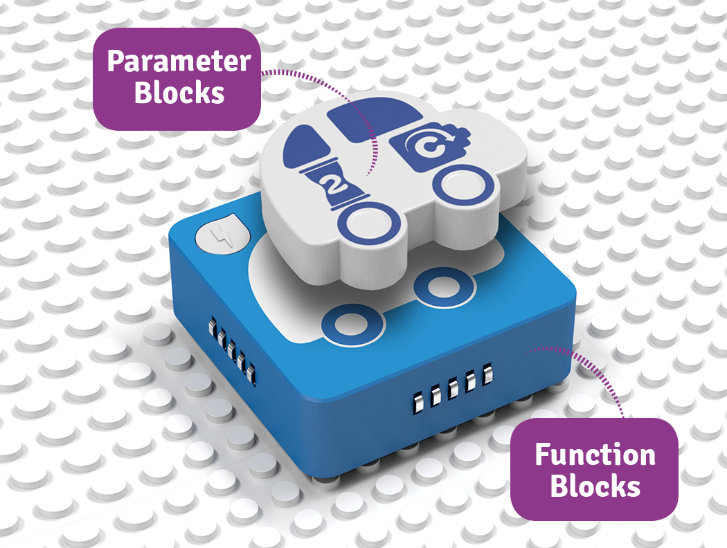 By matching function and parameter blocks together, the child creates a command for the robot. For example, moving it forward or turning on a red light. By putting the blocks together one after the other, it creates a code that the model will execute.